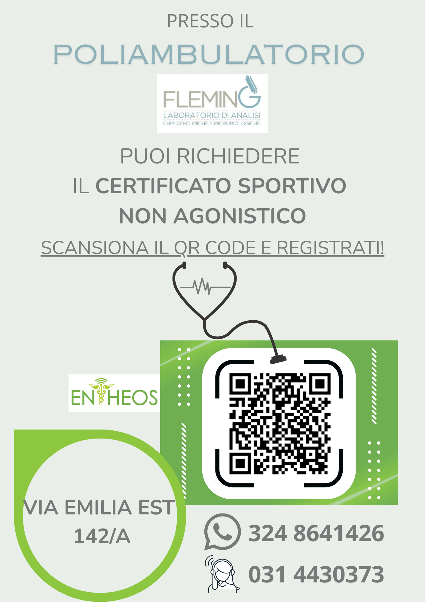 Per informazioni, consegna campioni o ritiro referti: 7:30-13:00.